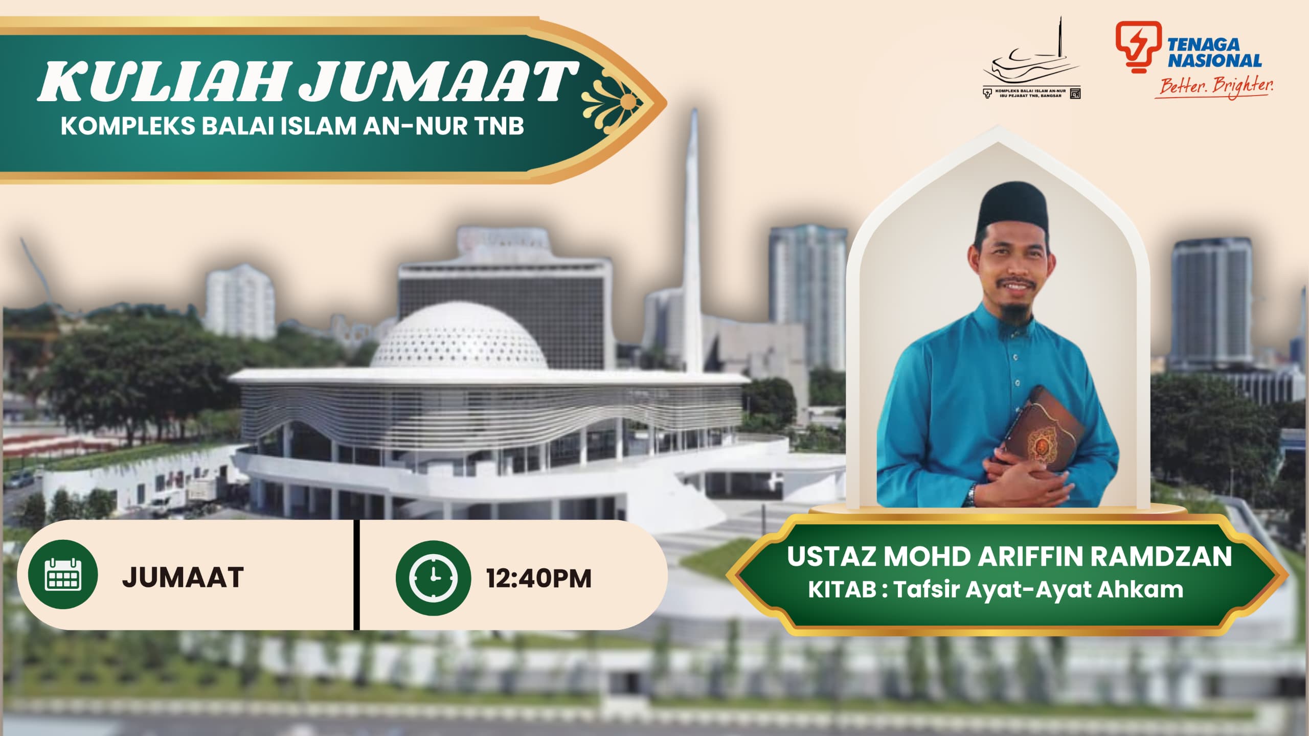 Tempat: Dewan Solat Utama Kompleks Balai Islam An-Nur, TNB